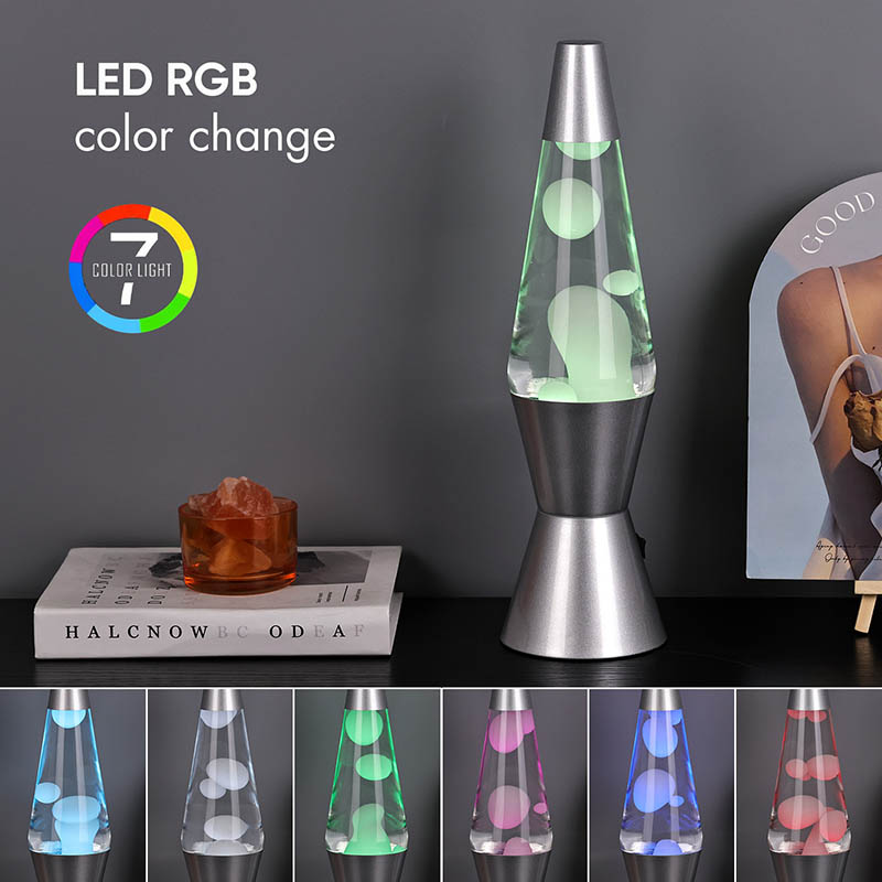 15 انچ آر جی بی ایل ای ڈی لاوا لیمپ میں نیچے 7 رنگ تبدیل ہوتے ہیں۔ رنگ لاوا کے ساتھ سفید ہے۔
