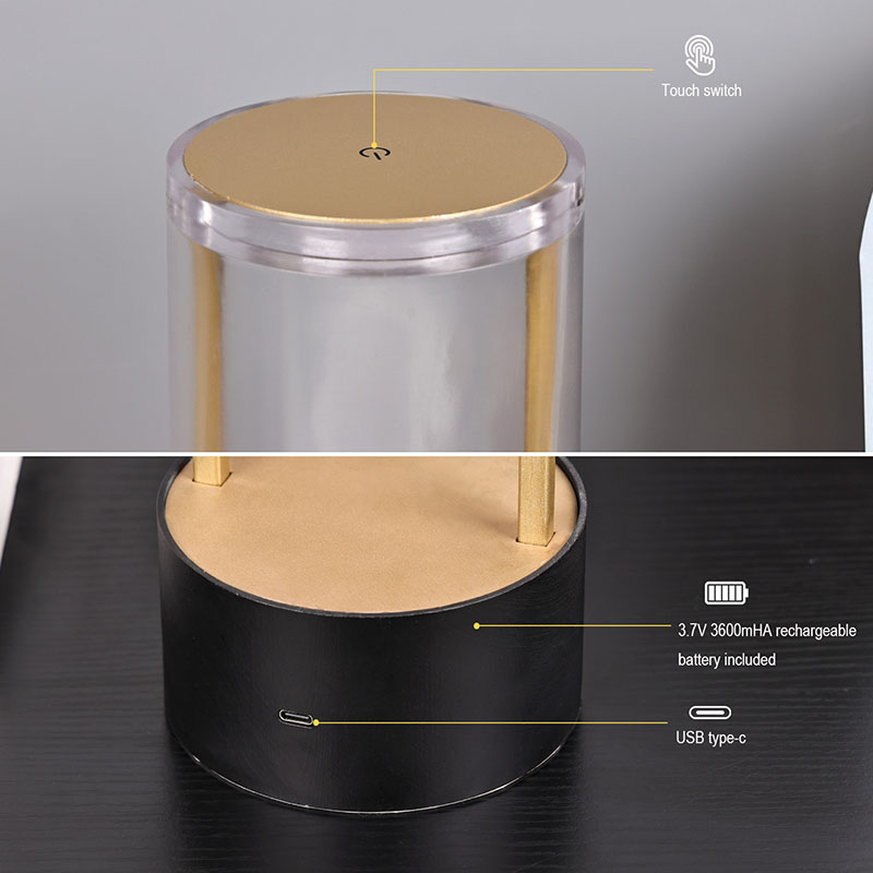 لالٹین اسٹائل کے سب سے اوپر چھوٹے ٹیبل لیمپ ایک ٹچ حساس لائٹ سوئچ ہے ، جس میں نیچے ٹائپ سی ریچارج ایبل چارجنگ ہیڈ ہے۔ اوپری شفاف ایکریلک کور پر مشتمل ہے ، اور نیچے دھات کی بنیاد ہے۔ مجموعی طور پر سرکلر ڈھانچہ متحرک روشنی کی اجازت دیتا ہے