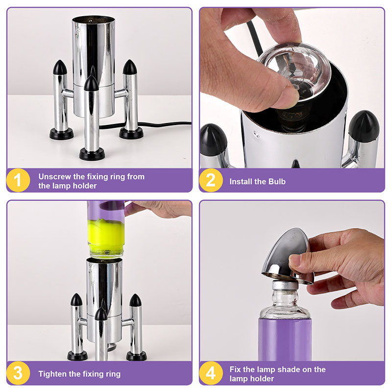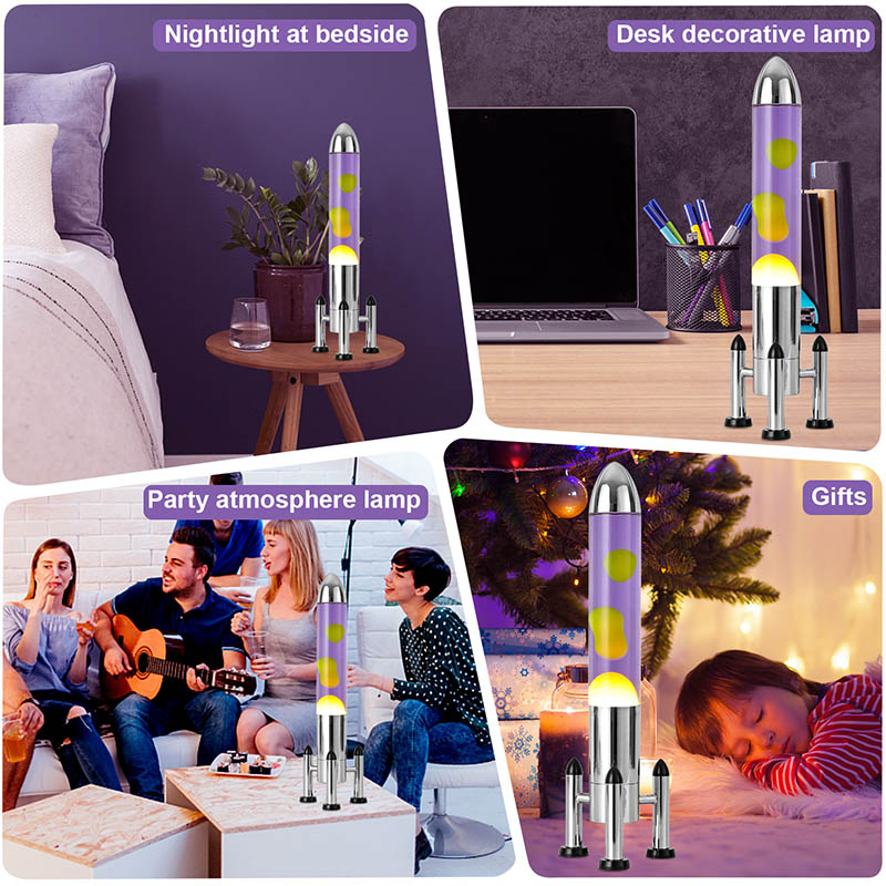 24vراکٹ سایہ کے ساتھ بڑے ایل ای ڈی لاوا لیمپ میں کلاسیکی راکٹ کے سائز کا ڈیزائن شامل ہے ، جس میں چاندی کے دھات کا شیل جوڑا شفاف شیشے کی بوتل کے جسم کے ساتھ جوڑا جاتا ہے ، جو آسان اور سجیلا ہے۔ جامنی رنگ کے مائع میں پیلے رنگ کے فلوٹس