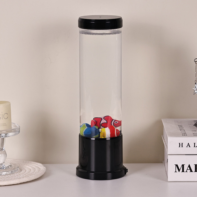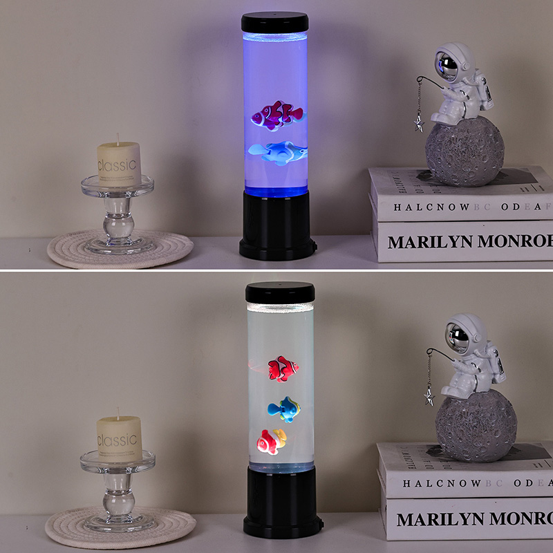 اس چراغ کے دل میں ایک حقیقی مچھلی کے ٹینک کا احتیاط سے تیار کردہ نقلی ہے۔ واضح کالم کے اندر، آپ کو خوبصورتی سے تفصیلی، تیرتی ہوئی مچھلی کے اعداد و شمار ملیں گے — جیسے متحرک کلاؤن فِش اور دیگر اشنکٹبندیی انواع — جو پانی جیسے مائع میں آہستہ سے حرکت کرتی اور تیرتی ہیں۔ چمکتی ہوئی جیلی فش کا اضافہ پانی کے اندر جادوئی وہم کو بڑھاتا ہے، جو آسمانی روشنی کے ساتھ نرمی سے دھڑکتا ہے۔ حرکت اور رنگ کا امتزاج ایک متحرک منظر تخلیق کرتا ہے جو توجہ کو اپنی طرف متوجہ کرتا ہے اور آپ کے ماحول میں سکون لاتا ہے۔