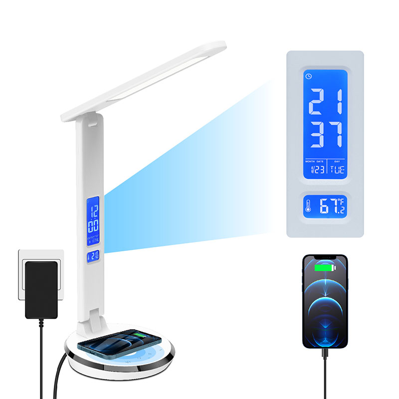درجہ حرارت ڈسپلے کے ساتھ LCD اسکرین ہے 、 وقت 、 الارم گھڑی 、 بیک باڈی کونٹورل بٹن کے ساتھ مستقل کیلنڈر۔ اور ڈیسک لیمپ کے سائے کو واپس USB چارج پورٹ ہے۔