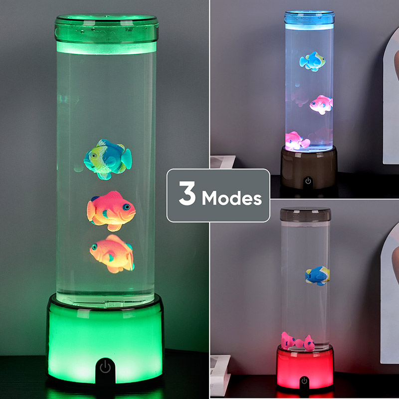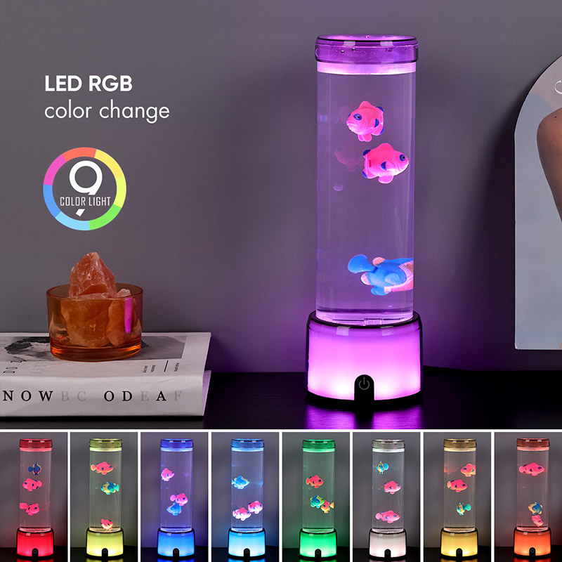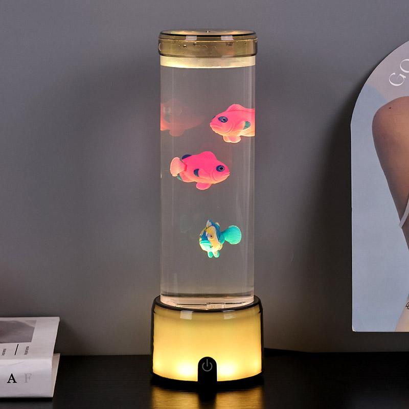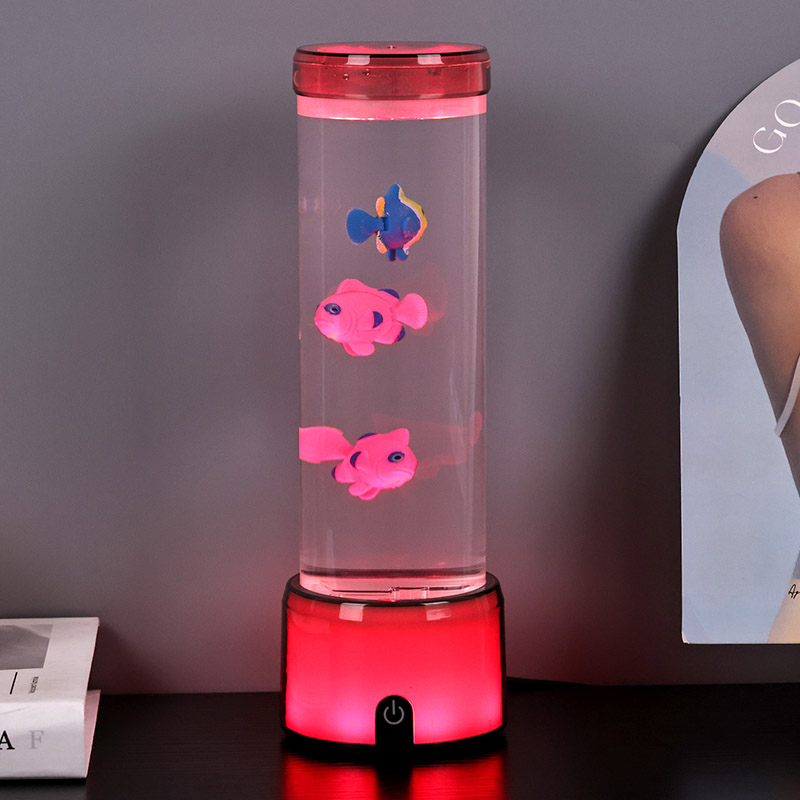 مچھلی کے چراغ کی بنیاد ایک آرجیبی رنگ کے رنگوں سے لیس ہے جو شفاف بیس کو تبدیل کرتی ہے ، جو روشنی کے متعدد رنگوں کو خارج کرسکتی ہے ، جس سے پورے چراغ جسم کو رنگین اثر پیش کرتا ہے۔ سوئچ آن کرنے کے بعد رنگین