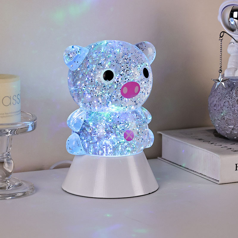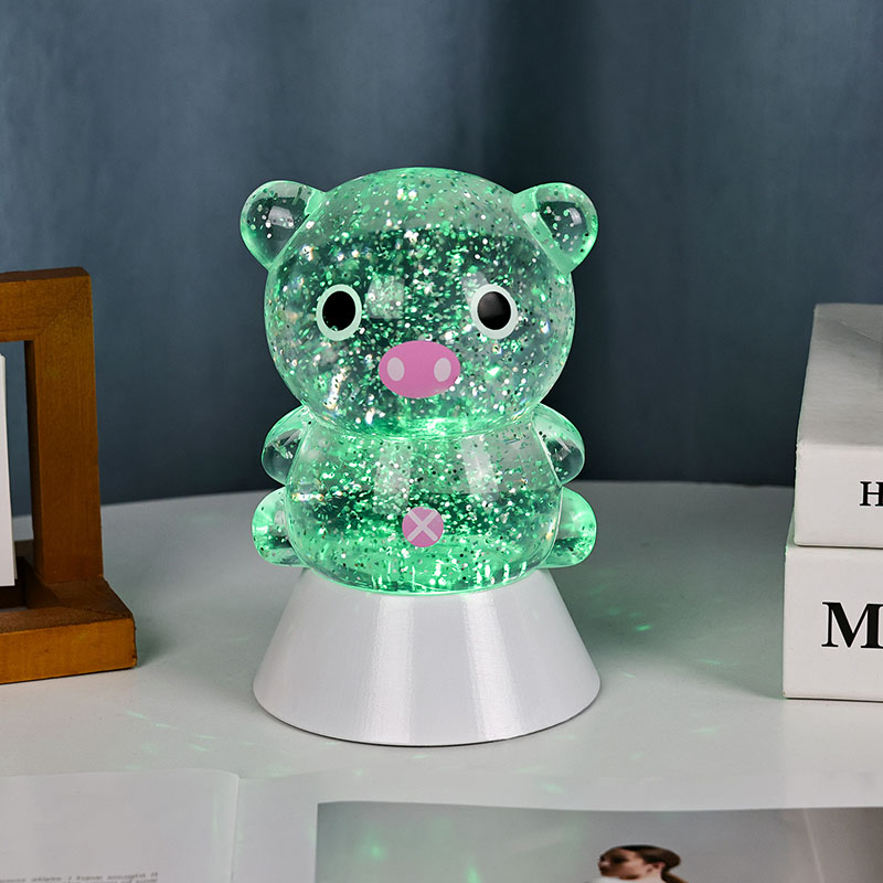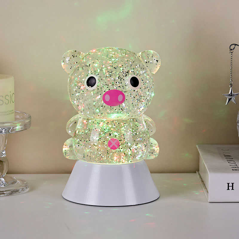 مجموعی طور پر ڈیزائن میں ایک خوبصورت اور پیارا گللک امیج کی خصوصیات ہے ، جس میں اس کی گول اور بولڈ شکلیں بڑی آنکھوں ، گلابی رنگ کے اسنوٹ ، اور پیارے چھوٹے کانوں کے ساتھ جوڑ بناتی ہیں ، جس میں فوری طور پر بالغوں اور بچوں دونوں کے دلوں کو اپنی گرفت میں لے لیا جاتا ہے۔ شفاف رال شیل چمکتے رنگ کے سیکنز اور خصوصی مائع سے بھرا ہوا ہے ، جو لائٹس آن ہونے پر آہستہ سے مائع کے ساتھ بہتا ہے ، جس سے ایک خیالی بصری اثر پیدا ہوتا ہے جیسے ایک تارامی ندی جیسے گلل کے جسم میں بہتا ہے۔ ہلکے رنگ خود بخود چکر لگاتے ہیں ، نرم گلابی اور غیر حقیقی جامنی رنگ سے تازہ نیلے اور سبز رنگ کی طرف جاتے ہیں ، رنگوں کے قوس قزح میں مستقل طور پر تبدیل ہوتے رہتے ہیں جو پرامن اور جادوئی ماحول پیدا کرتے ہیں ، گویا پریوں کی کہانی کی دنیا کو حقیقت میں لاتے ہیں۔