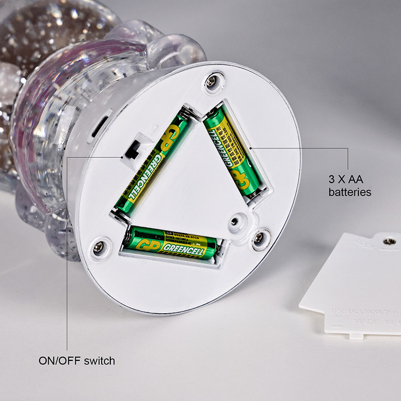 سور شیڈ آر جی بی گلیٹر ٹیبل لیمپ میں نچلے حصے میں ایک سادہ اور خوبصورت سفید بیس ڈیزائن کی خصوصیات ہے ، جو نہ صرف مجموعی جمالیاتی کو بڑھاتا ہے بلکہ ٹپنگ کو روکنے کے لئے استحکام کو بھی بہتر بناتا ہے۔ بیس میں اندرونی بیٹری کا ٹوکری شامل ہے جہاں صارف آسانی سے تین AAA بیٹریاں انسٹال کرسکتے ہیں (شامل نہیں)۔ پلگ ان کرنے کی ضرورت کے بغیر ، یہ پورٹیبلٹی پیش کرتا ہے اور بستر ، ڈیسک ، پالنے یا سفر کے دوران پلیسمنٹ کے لئے مثالی ہے۔ سوئچ ڈیزائن صارف دوست ہے ، جس سے آسان ٹچ کے ساتھ آسانی سے/آف کنٹرول کی اجازت ملتی ہے ، جس سے اسے چلانے کے لئے محفوظ اور سیدھا ہوجاتا ہے-خاص طور پر بچوں کو آزادانہ طور پر استعمال کرنے کے لئے موزوں۔