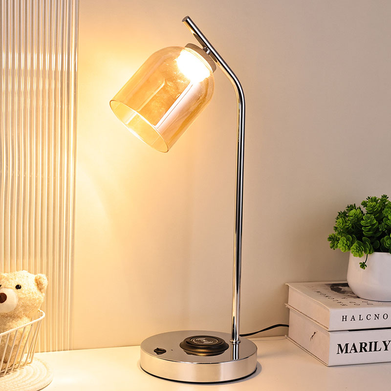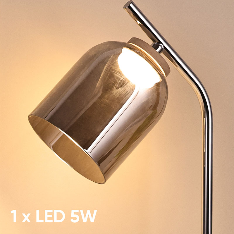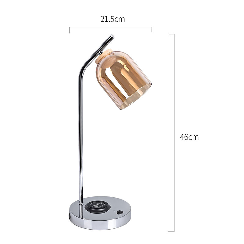کروم بیس ، دھواں دار (امبر) شیشے کا سایہجدید ڈیزائن ، شیشے کا مواد ، اعلی کے آخر اور خوبصورت ظاہری شکل ، انتہائی سجاوٹی ڈیسک لیمپ ڈیزائن اسٹائل
