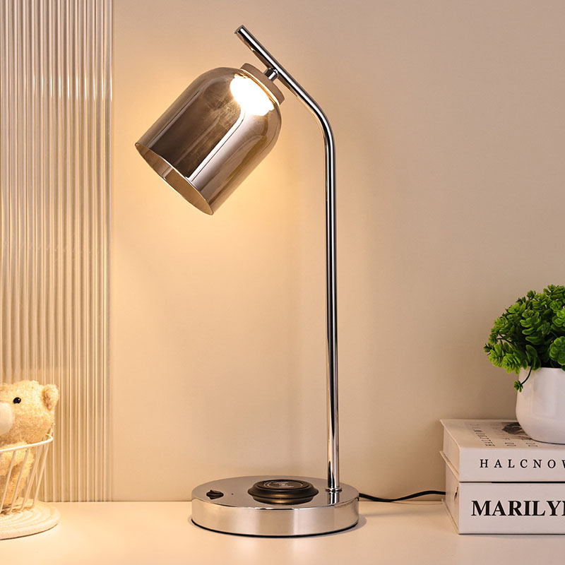 دھات کی سلیور بیس اور جسم کے ساتھ شیشے کے سائے کے ساتھ کیوئ ایل ای ڈی ڈیسک لیمپ