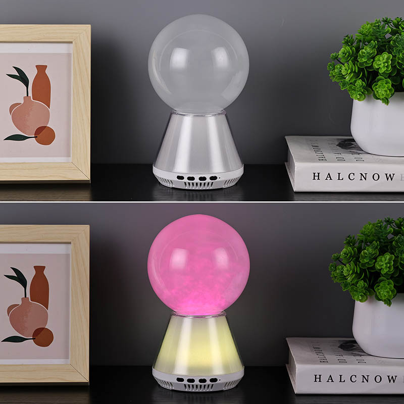 بلوٹوتھ کنٹرول کے ساتھ آر جی بی ایل ای ڈی گلیٹر لیمپ کی بنیادی خاص بات اس کا منفرد گلاس بال ڈیزائن ہے۔ شیشے کے دائرے کا اندرونی حصہ ایک پراسرار مائع سے بھرا ہوا ہے۔ جب چراغ آن کیا جاتا ہے تو ، مائع آہستہ آہستہ دائرے کے اندر بہہ جاتا ہے ، جس سے خوابوں کی طرح بادل کا اثر بنتا ہے۔ یہ بادل اور دوبد آسمان سے گرتے دکھائی دیتے ہیں ،